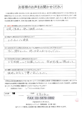 文京区で屋根工事を行ったお客様の声