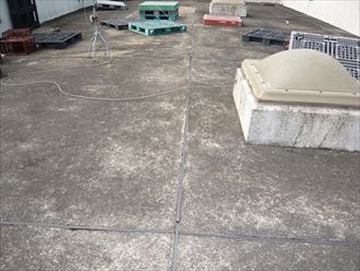 新宿区戸山にて風災による波板補修にあわせウレタン塗膜防水工事で雨漏りを防止、施工前写真