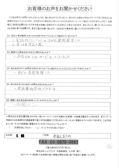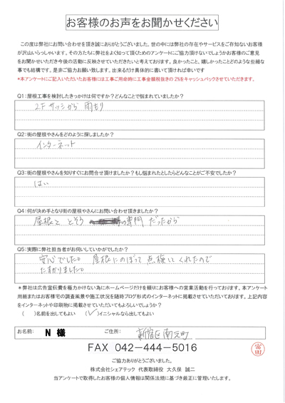新宿区で屋根工事を行ったお客様の声