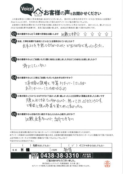 新宿区若松町にてベランダ波板調査を実施、H様のアンケート