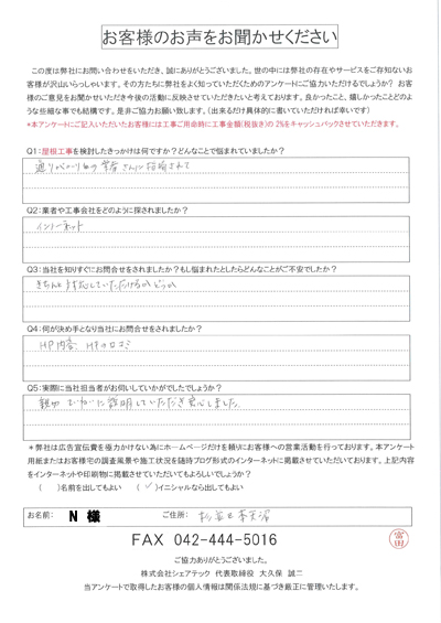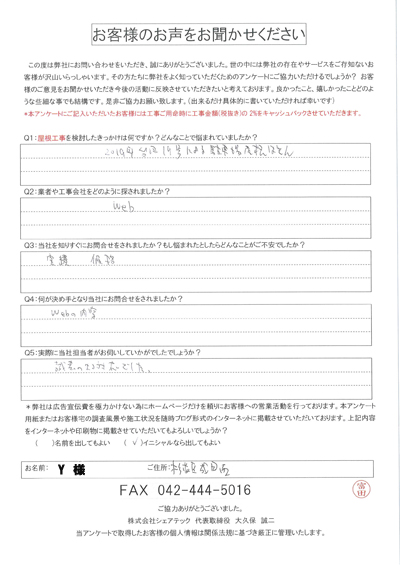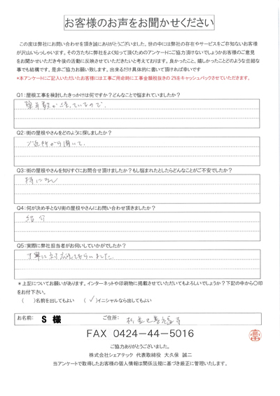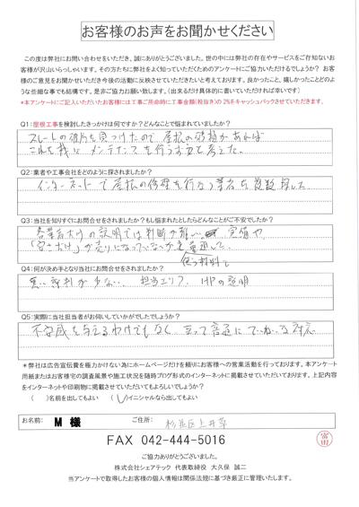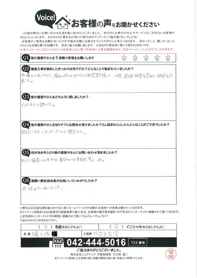 杉並区で屋根工事を行ったお客様の声