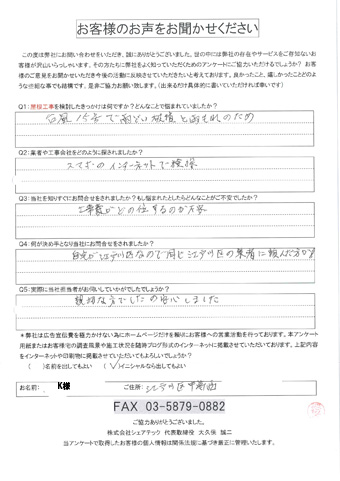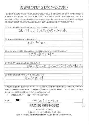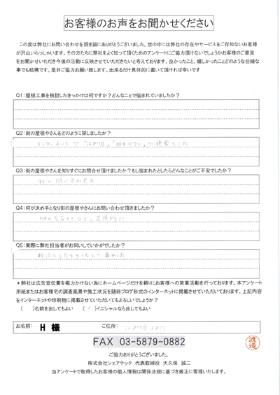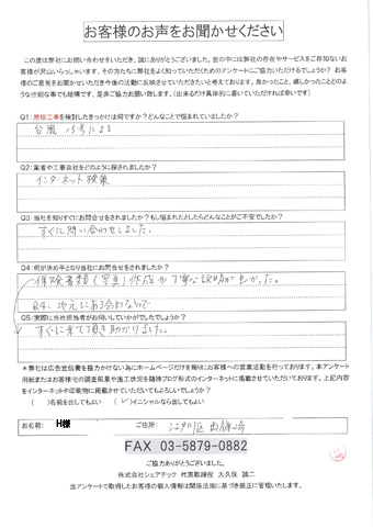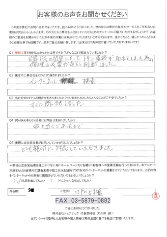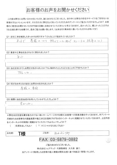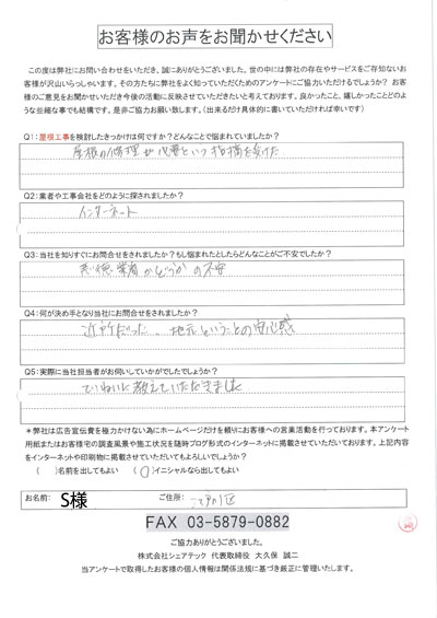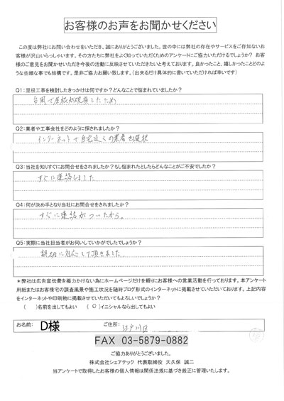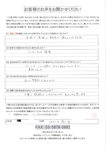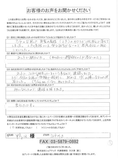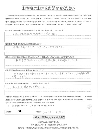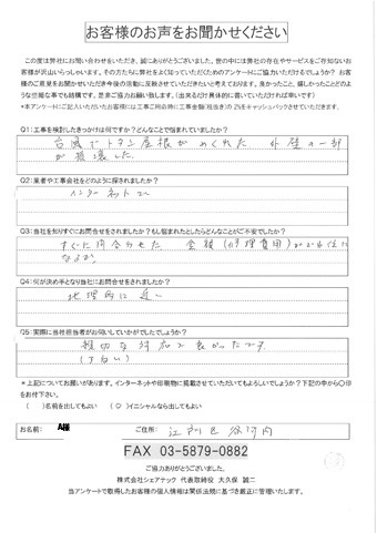 江戸川区で屋根工事を行ったお客様の声