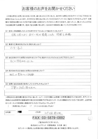 江戸川区で屋根工事を行ったお客様の声一覧