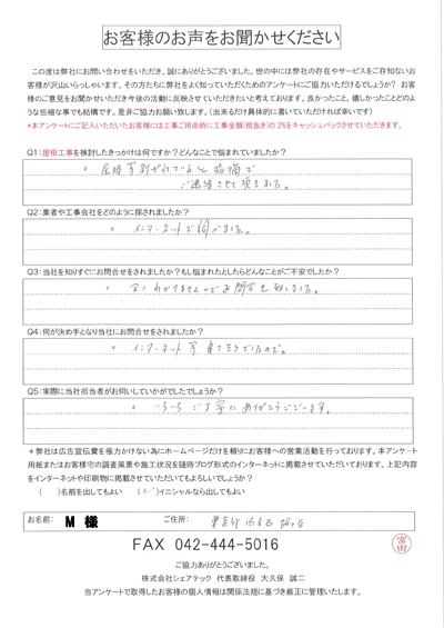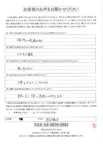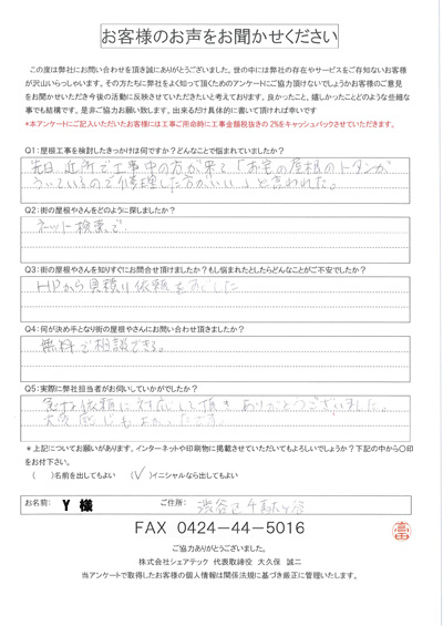 渋谷区で屋根工事を行ったお客様の声