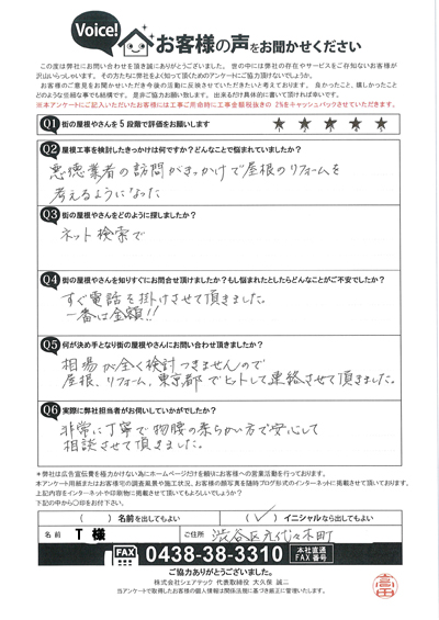 渋谷区で屋根工事を行ったお客様の声一覧