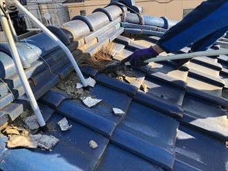 シルガードを使った棟の漆喰詰め直し工事|横浜市鶴見区