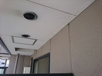 お問合せがあったのは、マンションのバルコニー部分で雨漏りしているという内容です。上の階から下の階へ排水管が貫通する造りになっていて、その天井部分が雨漏りによってボロボロになっていました。排水管は上から雨水が流れた跡があり、結構前からこの状態になっていた様です。