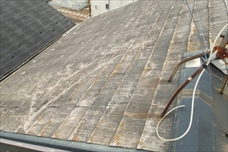 お話を聞くと、「他にも2社ほど診てもらったが、言ってる事が違うのでよくわからない。屋根と外壁をどうしたらいいか、忌憚のない意見を欲しい」と言われました。お任せください!