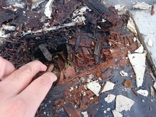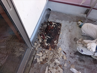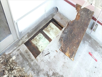 上から見えない防水の床下地は雨漏りでボロボロです|横浜市都筑区