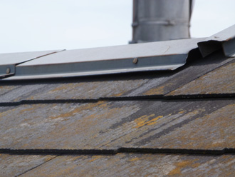 この音の正体は、アパートのスレート屋根の棟板金が浮いてしまい剥がれそうになっていて、風に煽られ出ていた音でした。