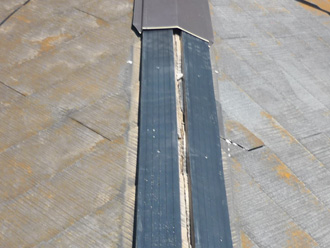 お客様とお打合せを行い、以前は木製の貫板を使用していましたが完全に腐食し、釘も簡単に抜け落ちていましたが、今回の板金工事は樹脂製の貫板とステンレスビスを使用し、強風に強い棟板金としました。