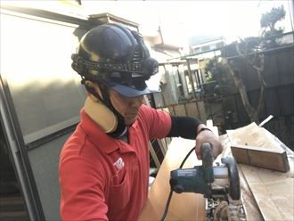 お客様のお住まいには大きなお庭がありました。住みながらなので限られたスペースで施工しなくてはいけないのですが、お庭を作業スペースとして使わせていただけたため、大変助かりました。