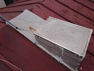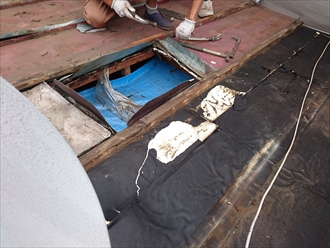 箱状になった所を撤去すると穴をふさいだ跡がありました。新しく屋根を葺くときに綺麗に塞いでしまうので全く問題ありません。