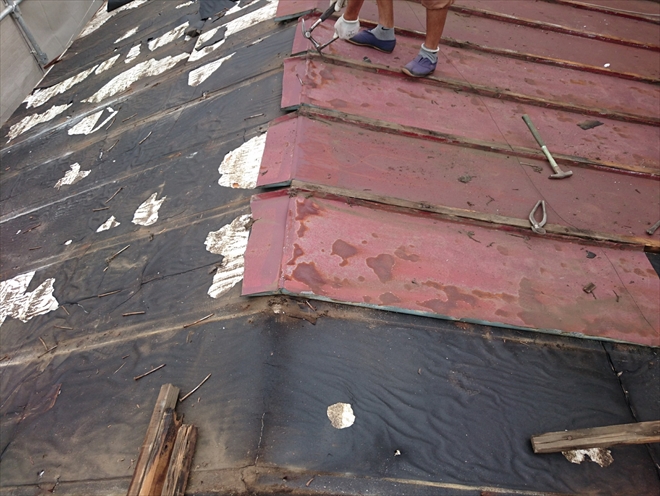 古い屋根材を剥がして下地の状態を確認します