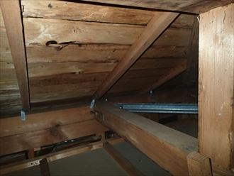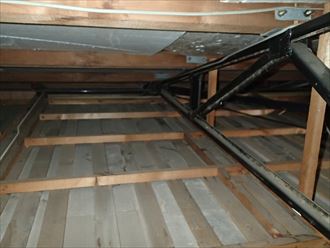 千葉市花見川区で行われている屋根工事ですが、屋根の構造で縦葺きのカバー工法を選択したと前回お伝えいたしておりますが、どういう事かと申しますと小屋裏の中でご説明いたします。