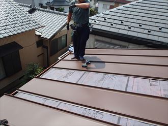 千葉市花見川区の縦葺き屋根カバー工事、スタンビーを使用