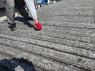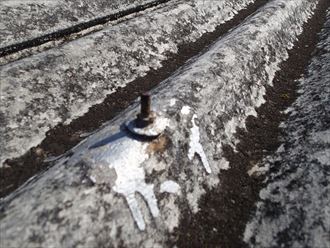 千葉市|倉庫の大波スレート屋根、フックボルトからの雨漏り