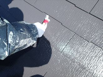 千葉県市原市の遮熱塗料サーモアイSiで屋根塗装工事をおこなっているお客様の現場ですが上塗り終了後の確認作業を行います。お客様の大切な屋根ですからしっかり確認を行って参ります。