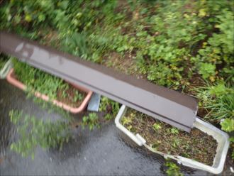 君津市|台風21号の大風で棟板金庭に落下