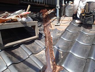 谷板金の補修は、安易にはとどまりません。屋根の構造上、屋根資材が谷板金の上に乗っかっているので、板金が撤去出来るように廻りの資材を一度剥がします。他の資材も脱着をしなければいけないのです。棟とはこの時点で違います。現在の工法ですと屋根の種類に問わず同じ工法ですので、防ぎようがございません。一番屋根の中で雨漏れしやすいですが、定期的にチェックをし交換か、板金でしたら塗装を施すなどしなければいけません。