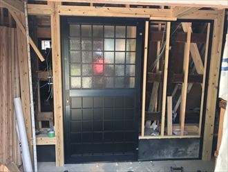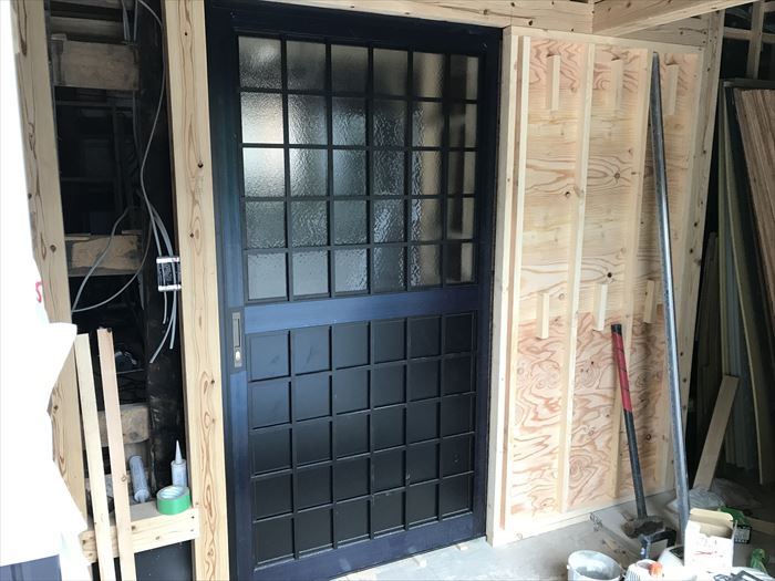 君津市|築100年経つ蔵の改修工事で玄関サッシ取り付け工事