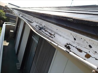 君津市にお住まいのお客様から「ベランダ上の雨樋から、雨水がぼたぼたと落ちてくる」とのご相談がございました。
