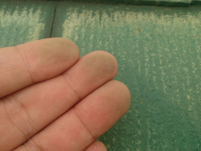 屋根の表面を触ると指先に以前に塗装した塗料の色が付きます。これがチョーキングで、表面が劣化していて撥水性が落ちてしまった証拠です。このチョーキングが出てきたらそろそろ塗装工事をおこなう目安になります。外壁などはチョーキングが起こっても分かりやすいのですが、屋根はなかなか見る機会がないので気付かない事も多いと思います。横浜市保土ヶ谷区の建物の様に、壁だけではなく屋根にもチョーキングは起こりますので、この症状が出てきたら傷みが酷くなる前に塗装工事のメンテナンスをおこないましょう。