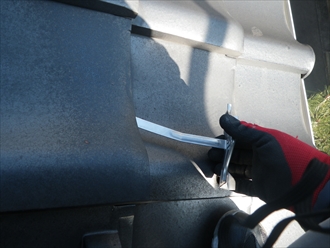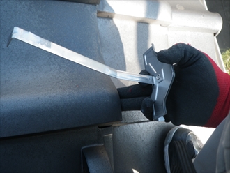 まずは瓦を持ち上げます。先の曲がった部分を引っ掛けて固定します。