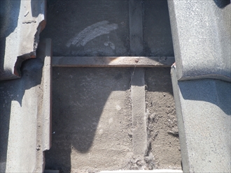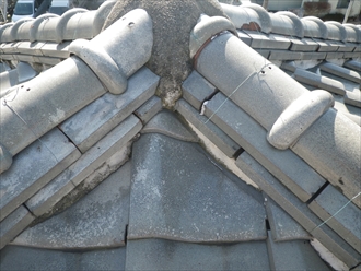 このままですと、漆喰が剥がれて棟瓦の泥が流れ出してしまい、棟瓦がズレて崩れてしまうことになります。