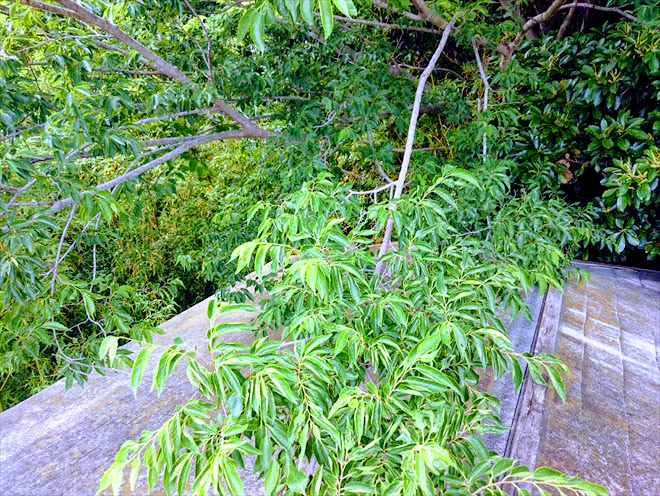 回りが林になっていて、屋根に覆いかぶさる様に木が生えています。これも建物には良くない状態で、樹液で屋根材が傷んでしまい、枝が揺れて屋根にぶつかる事で破損させる危険もあります。今回、川崎市高津区の空き家の調査結果は、小屋裏と屋根の上から傷みの状態を見て、葺き替え工事のご提案です。屋根材のスレート自体も反りや割れが酷く、下地の野地板にも腐食が見られますので、屋根材を剥がして下地をしっかりと直す必要があります。屋根の状態は、屋根の上からと小屋裏から細かく調査をおこなって、常に皆様の建物にとって適切な工事のご提案をさせていただきます。