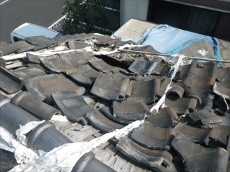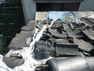 崩れかかった瓦屋根|横浜市瀬谷区