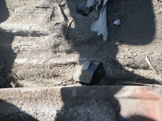 漆喰(しっくい)が剥がれて土が剥き出しになると、雨水で削れて棟が崩れてしまう事になります。瓦の下に葺いてある防水紙(ルーフィング)には20年~25年の寿命がありますので、直さなければならない所は結構あります。
