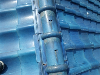 結果として下からの支えが無くなってしまうので、のし瓦がズレてきています。このままですと、棟全体が崩れていってしまいかねません。