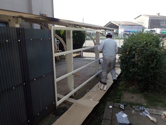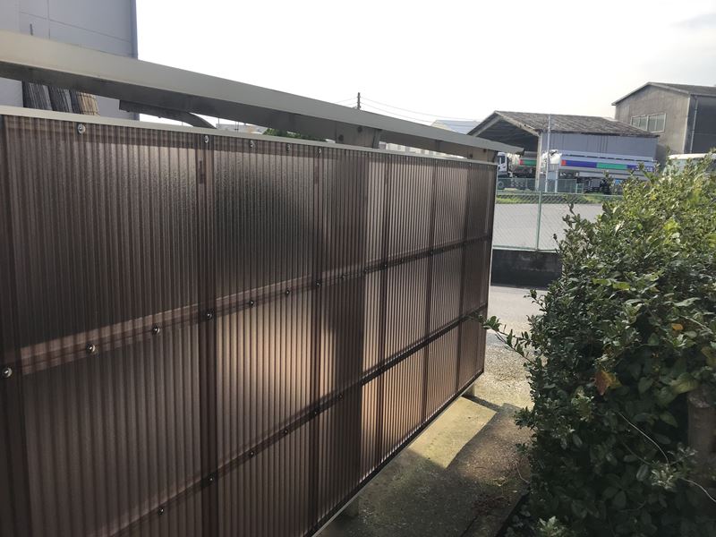 市原市で台風によりフレームごと飛散したカーポートのサイドパネルを大修理