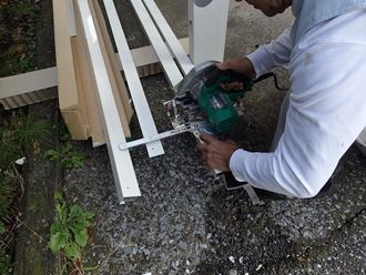 既存の支柱とは寸法も違うので全て、現地にて加工が必要になってきます。アルミ専用のカッターで切断が可能です。アルミは鋼材の中でも柔らかい部類に入り、鉄と違い錆びる心配が薄れます。耐候年数を考えると加工が安易に出来て錆びる心配がないのが大きなメリットとなります。少々鉄よりは高価な商品になりますが、耐候年数を考えるとアルミ製が良いと思われます。既製品なので焼き付け塗装がされているので、カラーのバリエーションもあり、これまでのものと違和感ないもの物をえらぶことができます。