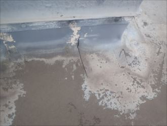 市原市にて陸屋根シート防水が破れ、雨漏れが発生