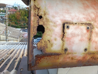特に煙突廻りは、錆びや腐食でいつ落っこちても不思議じゃない状況です。