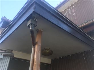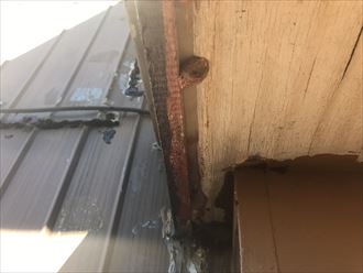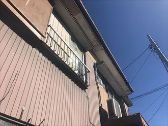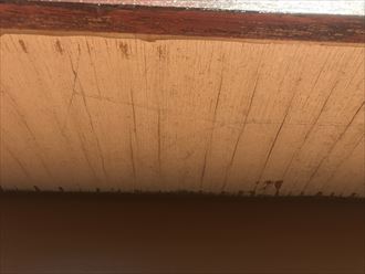 今回の工事は軒天補修主流ですが、その他にも直さなければいけない箇所などがありました。戸袋の木製引き戸の経年劣化、外壁や窓上の庇など雨漏れの要因になりそうな場所が有りました。軒天の正確な平米数を出すため、採寸しつつ、悪い箇所を写真を収め、その後、状況報告を致します。一人での採寸するとなると、ちょっとお時間をいただくこともございます。今回はちょっとお時間をいただくことになりました。
