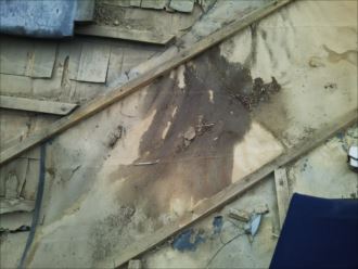 谷板金を剥がすと、劣化具合から見ても長い間雨漏れが生じていたことが解ります。