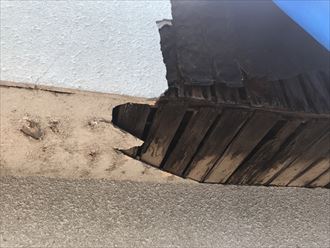 モルタルにより施工して在りましたが、所々に大きな構造クラックが見られました、溝が大きければ構造内部に漏水してしまいます。下地は少々古い建物で当時は支流でした、貫下地でつくらていました。貫下地は主に杉などを主としている木材で多く普及しています。ほとんどが12ミリから15ミリ厚で荒切りされているため、水分があると吸収しやすく劣化の要因になってしまいます。