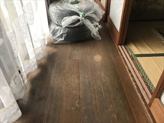 木更津市にお住まいのお客様は広縁の床材が剥がれて靴下などに刺さって困っていました。床を張り替えたら大工事になってしまうのではないかと躊躇し、ご相談できなかったそうです。