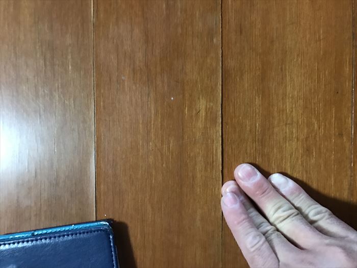 床はフローリングで突板フローリングでした。突板フローリングでも種類が何通りかあります。突板フローリングと無垢フローリングです。どちらも表面上は本物の木が使われているため、時が経つと劣化して表面が剥がれてきます。無垢フローリングは一枚の板そのままですので、薄く剥がれることはありませんが、ねじれや反りが出やすく一枚一枚の段差が出やすくなります。