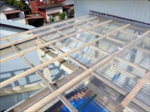 木更津市にお住まいのお客様は近頃、大風が多くなり、以前手作りにより作り上げたバルコニーの波板が劣化してしまい、風で音が鳴り、ご近所様に迷惑になっていないか不安になっていたそうです。