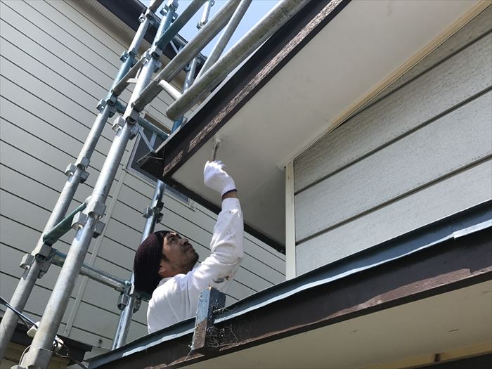 軒天の剥がれに困っていた木更津市のお客様の施工の様子をお届けします。今回の工事では既存の化粧下地を生かして、ケイカル板カバー工法で補修いたしました。