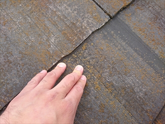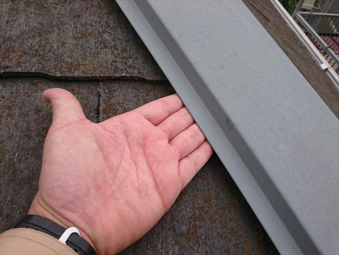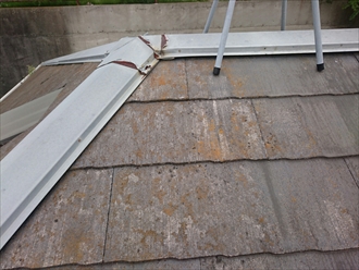 棟板金だけ見れば最低でもビス固定をすれば問題無いのですが、屋根全体をみるとスレート自体の傷みが結構進んでいるので、全体のメンテナンスを考えた方が良いですね。築年数が20年近くとの事ですので、屋根の下地の野地板がまだ丈夫なうちに金属屋根でカバー工事をおこなった方が良いでしょう。横浜市緑区の建物は経年によって棟板金が浮いてきましたが、今後の事を考えて屋根のカバー工事をお薦めしました。