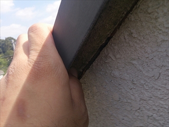 ケラバの野地板が雨によって腐っています。右の写真の部分なのですが、押すとズブっと指が入りそうになるくらいです。ここは『ケラバ』という部分で、屋根の側面にあたるところです。屋根材が葺いてあるので確認出来ませんが、ケラバの板金と防水紙の納まりに問題があるかもしれません。先日の大雨だけではこの様な劣化具合にはなりませんので、だいぶ前から傷みは進行していた様です。屋根全体を見た結果、葺き替え工事をした方が良いでしょう。理由は、スレートの反りが酷いこと、雨漏りにより野地板に傷みがあることです。既存のスレートを剥がしてから野地板に傷みが出ている部分を直して新しく屋根を葺くのが良いでしょう。