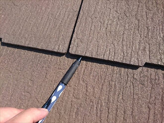 横浜市南区でスレート屋根の調査工事をおこないました。築10年を経過して何かしらのメンテナンスを進めようと思い、お問合せ頂きました。パッと見はコケや汚れの付着も殆どなく状態は良さそうですが、詳しく調べるとヒビ割れが何箇所も出ています。ヒビ割れが出ていますが脱落する程ではありませんので、補修をおこなえば問題無く塗装が可能です。若干反りが出始めていますが、塗装工事で表面を保護すればこれ以上の劣化の進行を遅らせる事が出来ます。