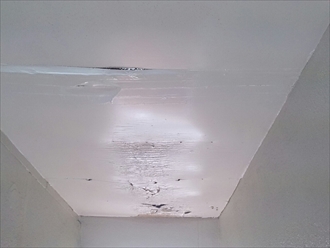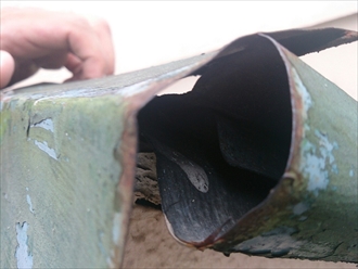 左の写真は棟部分です。パカパカになっていて雨が降るたびに雨水が浸入してしまいます。野地板も防水紙もないので雨水が入るとそのまま天井に流れてしまいますので侵入経路を塞がないといけません。屋根全体をみましたが、原因が多岐に渡っているために、雨漏りを止めるためには屋根の葺き替え工事を行う必要があります。下地も直して新しい屋根で雨漏りの不安を解消しましょう。