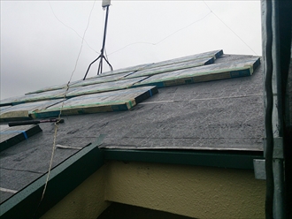 横浜市旭区でカバーしてある屋根を葺き替え中です