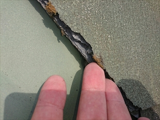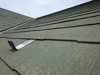 屋根の色々な部分で剥離が出ていました。幸いな事にまだ下地の野地板(のじいた)に劣化は出ていませんので、上から新しい屋根材を被せるカバー工事が可能です。横浜市泉区の建物の様に、ニチハパミールの劣化でお困りの屋根には、塗装工事ではなく金属屋根を被せるカバー工事が最適です。